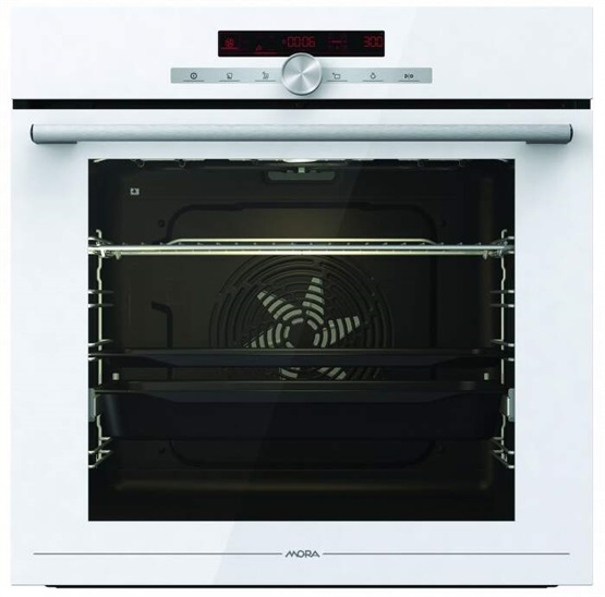 Vestavná trouba - rozměry 59,5 × 59,5 × 56,4 cm (V׊×H), parní, objem 77 l, vybavena programem rychlého předehřátí, grilem, kruhovým topným tělesem, programem pro ohřev talířů, pravým horkým vzduchem, rozmrazováním, statickým pečením, programem na pizzu, disponuje teleskopickým vysouváním plechu, příkon 3500 W, 3vrstvé sklo dvířek, časovač, energetická třída A+