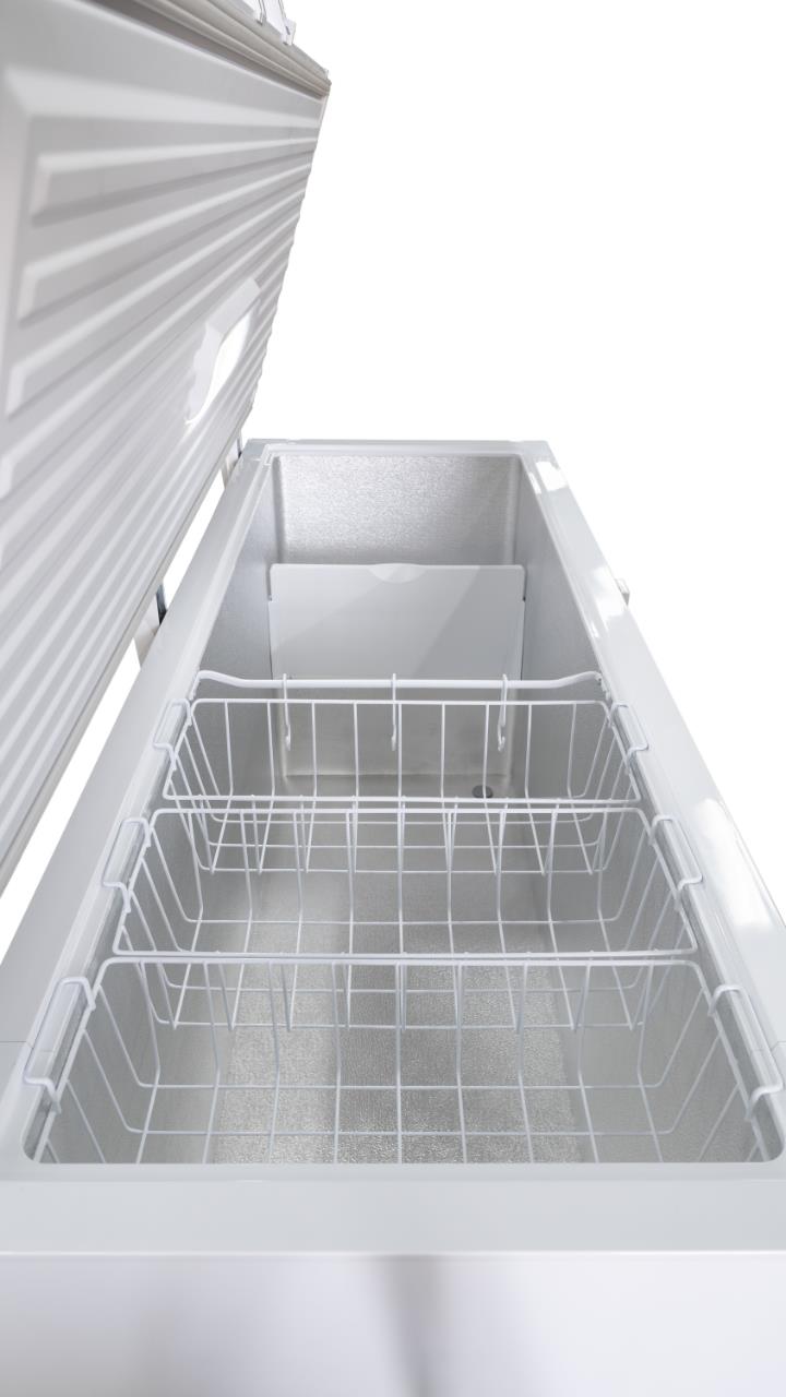 Volně stojící pultová mraznička; bílé barevné provedení; energetická třída C; roční spotřeba energie 745 kWh; celkový hrubý objem: 572 l / užitný objem: 561 l; 3 volitelné režimy provozu: mraznička (-18/-24 °C), rozmrazování/nízkoteplotní prostor (-1/1 °C), chladnička (4/6 °C); velký prostor pro pohodlné uložení objemných potravin; 2 úložné koše; háčky na zavěšení potravin; vnější horizontální madlo se zámkem; vnitřní LED osvětlení; mechanický termostat; ovládání otočným voličem; kontrolka napájení (zelená); kontrolka porucha/vysoká teplota (červená); klimatická třída 5/CC1 +16°C až +40°C; mrazící výkon 20 kg/24h; výdrž bez proudu 35 h; hlučnost 41-45 dB (A); rozměry (VxŠxH): 84 x 177,5 x 74,3 cm; hmotnost 72 kg