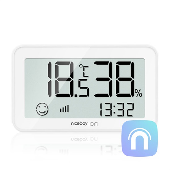 Chytrý senzor teploty a vlhkosti. Propojení s mobilní aplikací Niceboy ION. Kompatibilita s Google Assistant. Pro použití senzoru je nezbytná centrální jednotka Niceboy ION ORBIS Bridge.