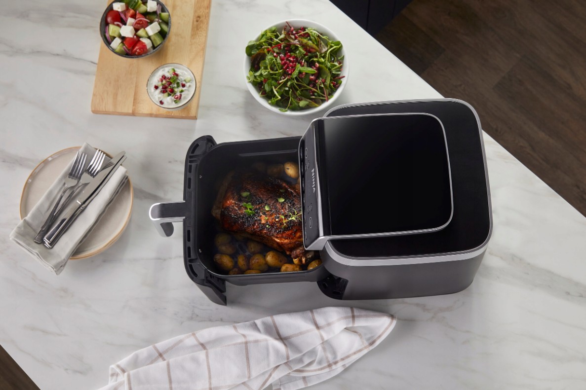 Rychlá a výkonná vzduchová fritéza Ninja umožňuje také vaření s až o 60 % méně energie než trouba. Můžete tak ušetřit peníze a energii, aniž byste se vzdali kvality domácích jídel.