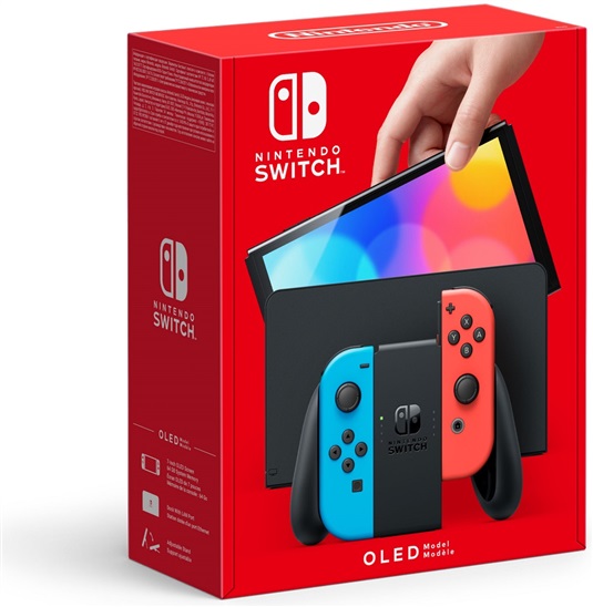 Nintendo Switch OLED neon red&blue - herní konzole • 3 režimy hraní (doma na televizi i samostatně na cestách) • 7" OLED dotykový displej (rozlišení 1280×720 px) • dokovací stanice pro připojení k televizi • 2 ovladače Joy-Con s vibrační odezvou a integrovanou IR kamerou • interní paměť 64 GB • podpora microSDHC/microSDXC • NFC • Wi-Fi • LAN port • online hraní • lokální multiplayer pro až 8 hráčů • výdrž baterie až 6,5 hodin • USB-C • rodičovský zámek