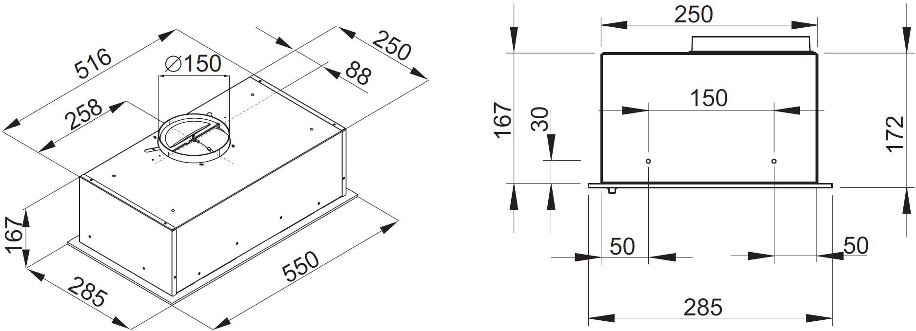 Plně vestavný odsávač par; černé barevné provedení s černým sklem; šířka: 55 cm; mechanické ovládání (tlačítka); energetická třída B, roční spotřeba energie 33,7 kWh; 3 stupně intenzity odsávání; výkon odtahu 175 - 335 m3/h; hlučnost: 55 - 66 db(A); 1x LED pásek; 1 x tukový filtr omyvatelný v myčce nádobí (součást balení); režim odtahu a možnost recirkulace; sada 2ks uhlíkových filtrů FR-0846 pro recirkulaci (náhrada za FWN130 a FWMGPZ), nejsou součastní balení; rozměry (VxŠxH): 16,7 x 55 x 28,5 cm