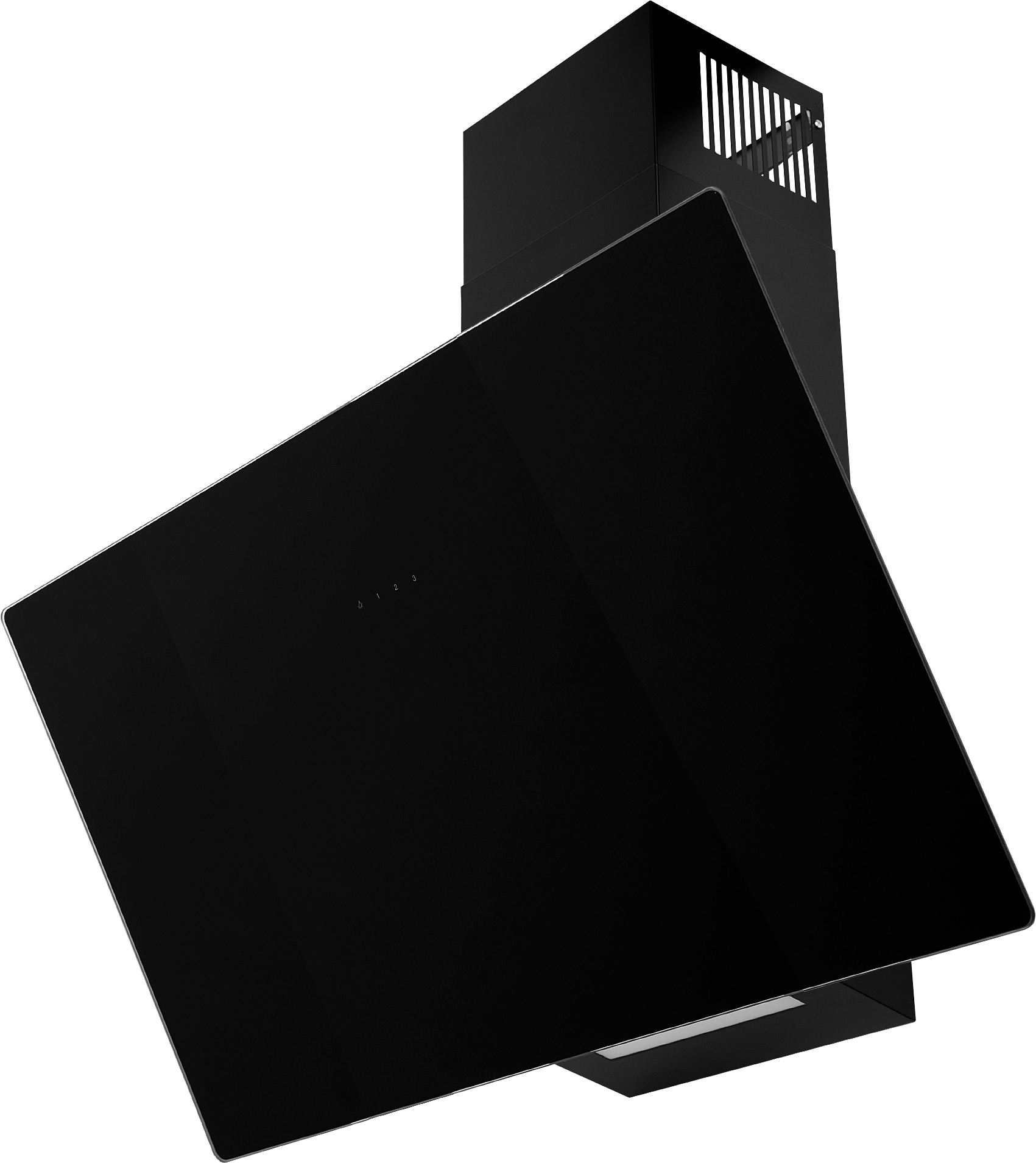 Dekorativní šikmý komínový odsavač par 60 cm, provedení černé sklo, max. výkon odtahu 740 m3/h