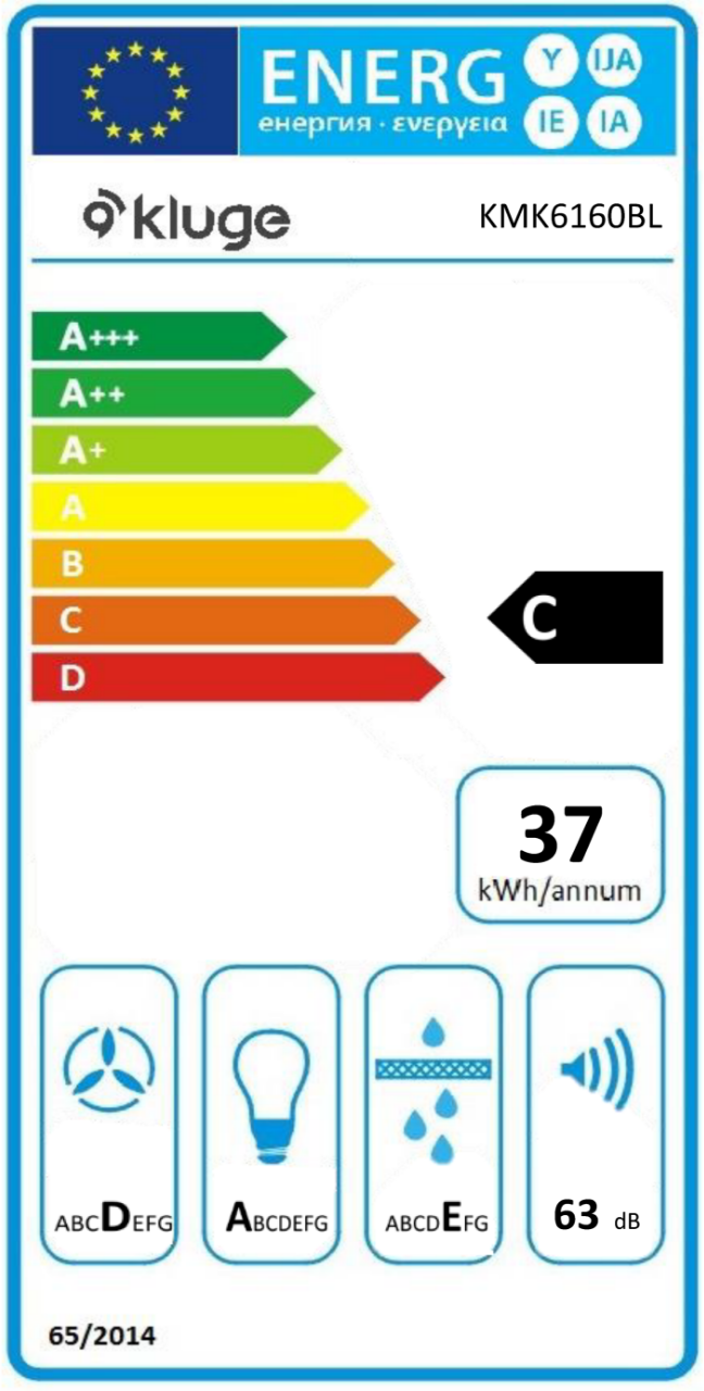 Komínový odsavač par v černém provedení, šířka 60 cm, mechanické ovládání (tlačítka), 3 stupně výkonu, výkon odtahu 185 - 305 m3/h, hlučnost 52-63 dB(A), roční spotřeba energie 36,9 kWh/a, energetická třída C (energetický štítek C,D,A,E), osvětlení 2x LED GU10, 2 x tukový filtr (typ ALU, 3 vrstvy) omyvatelný v myčce nádobí (součást balení), filtry z aktivního uhlíku režim recirkulace: 2x FR-0846 (závitový na motor, není součástí balení), rozměry (Š x H x V): 596 x 410 x 30 mm, výška s komínem: 480 - 774 mm
