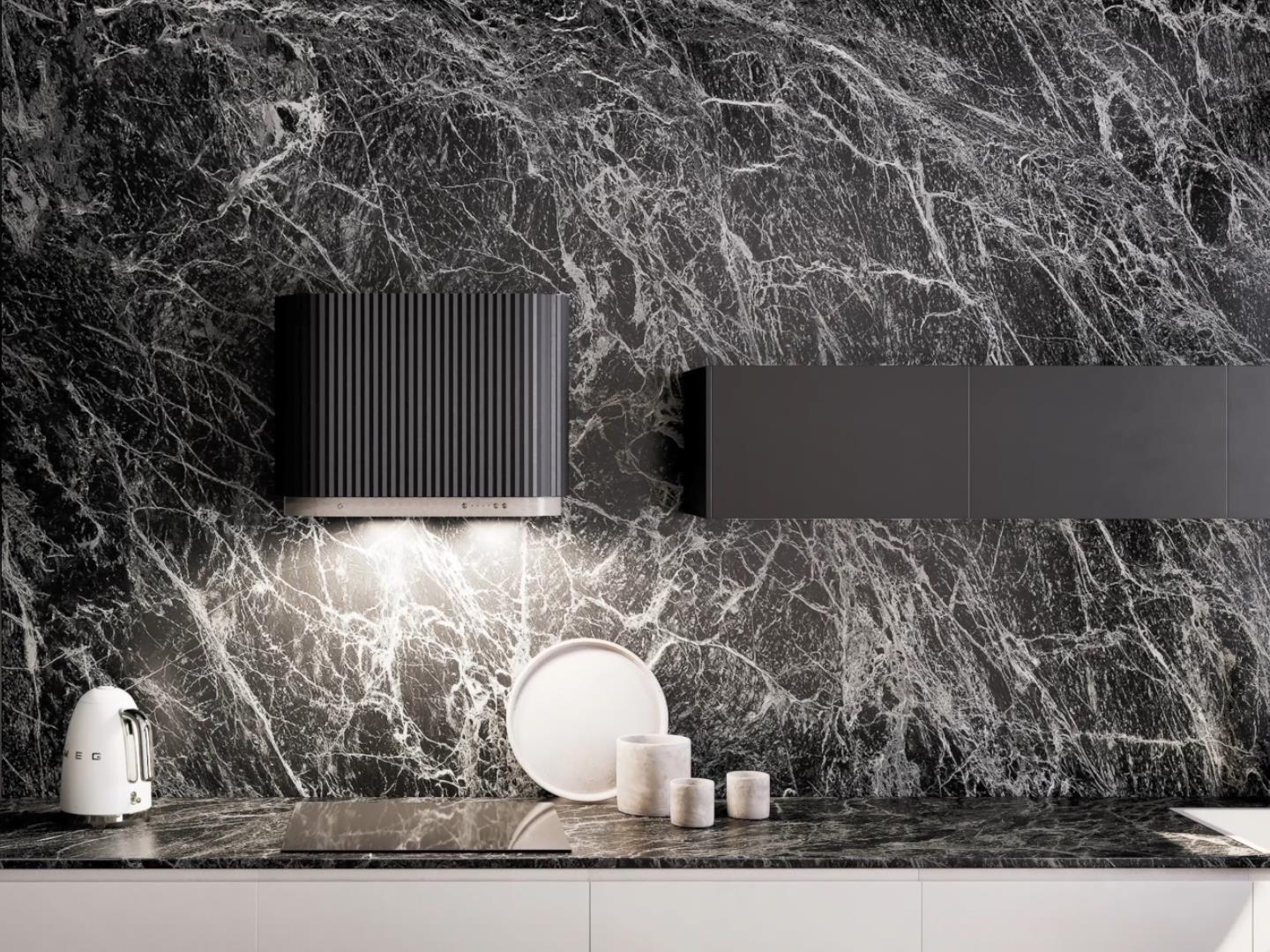 Odsavač Mono 60 v atraktivním černém designu se snadno začlení do vaší kuchyně a nabízí efektivní provoz díky svému výkonnému invertorovému motoru.