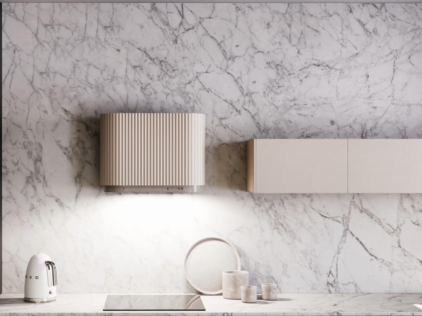 Odsavač Mono 60 ve svěžím designu ecru se snadno začlení do vaší kuchyně a nabízí efektivní provoz díky svému výkonnému invertorovému motoru.