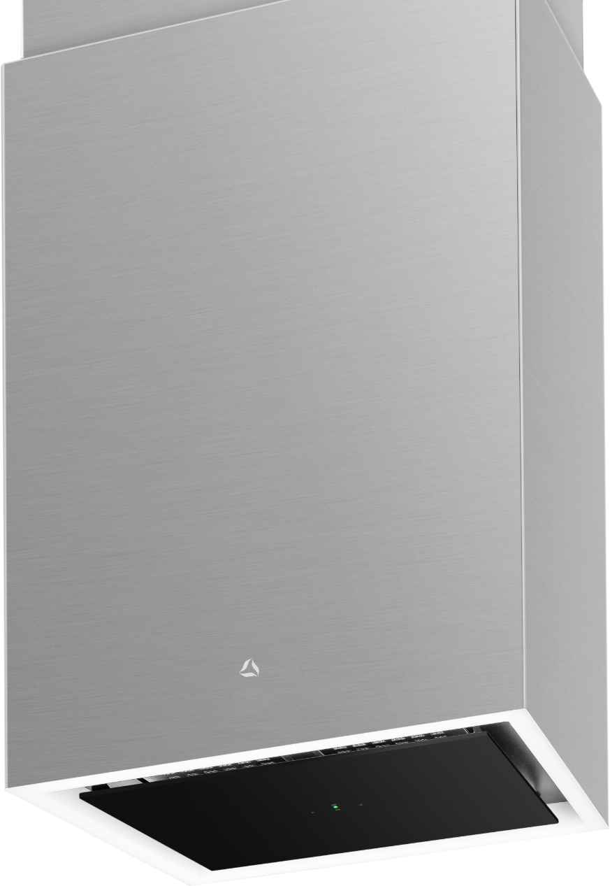 Ostrůvkový odsavač Cube W Inox z prémiové řady designových odsavačů Ciarko Design, nerezové provedení; tichý, výkonný a spolehlivý invertorový motor, bezdotykové ovládání gesty rukou + dálkový ovladač, LED display, 3 stupně výkonu + režim BOOST, výkon odtahu ve standardním režimu 140 - 390 m3/h, výkon odtahu v režimu BOOST 590 m3/h, hlučnost ve standardním režimu 43-62 dB(A), hlučnost v režimu BOOST 70 dB(A), roční spotřeba energie 38,2 kWh/a, energetická třída A (energetický štítek A,A,B,E), LED pásek po obvodu s regulací intenzity světla, filtr z aktivního uhlíku pro režim recirkulace 2 x FR-8705 (náhrada za FWND185), rozměry (V x Š x H): 97,5 až 120,5 x 40,2 x 30,2 cm