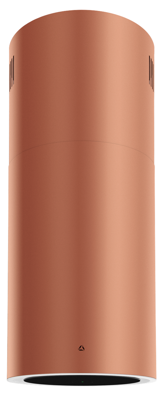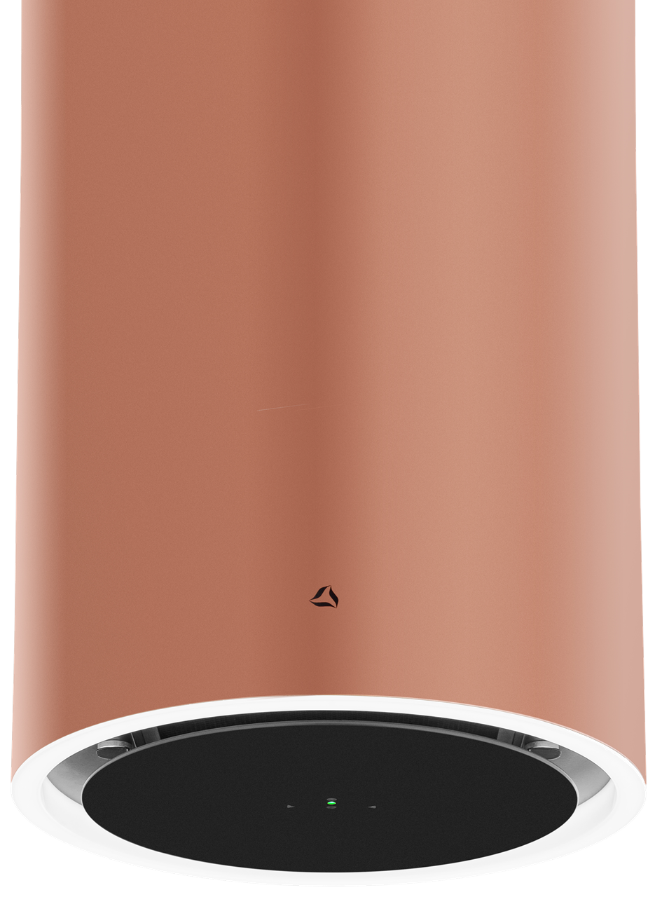 Ostrůvkový odsavač Tubus W Copper z prémiové řady designových odsavačů Ciarko Design, provedení matný kov v barvě mědi, průměr 38,2 cm, tichý, výkonný a spolehlivý invertorový motor, bezdotykové ovládání gesty rukou + dálkový ovladač, LED display, 3 stupně výkonu + režim BOOST, výkon odtahu ve standardním režimu 130 - 390 m3/h, výkon odtahu v režimu BOOST 560 m3/h, hlučnost ve standardním režimu 40-61 dB(A), hlučnost v režimu BOOST 70 dB(A), roční spotřeba energie 35,9 kWh/a, energetická třída A (energetický štítek A,A,C,D), LED pásek po obvodu s regulací intenzity světla, filtr z aktivního uhlíku pro režim recirkulace FR-7258 (náhrada za FWK228), rozměry (V x Š): 95,8 až 118,8 x 38,2 cm
