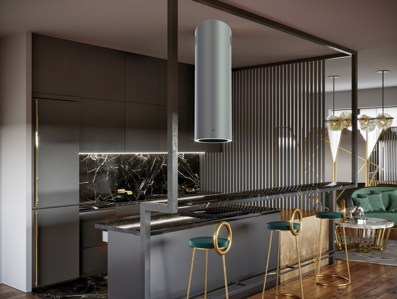 Ostrůvkový odsavač Tubus W Inox z prémiové řady designových odsavačů Ciarko Design, nerezové provedení, průměr 38,2 cm, tichý, výkonný a spolehlivý invertorový motor, bezdotykové ovládání gesty rukou + dálkový ovladač, LED display, 3 stupně výkonu + režim BOOST, výkon odtahu ve standardním režimu 130 - 390 m3/h, výkon odtahu v režimu BOOST 560 m3/h, hlučnost ve standardním režimu 40-61 dB(A), hlučnost v režimu BOOST 70 dB(A), roční spotřeba energie 35,9 kWh/a, energetická třída A (energetický štítek A,A,C,D), LED pásek po obvodu s regulací intenzity světla, filtr z aktivního uhlíku pro režim recirkulace FR-7258 (náhrada za FWK228), rozměry (V x Š): 95,8 až 118,8 x 38,2 cm
