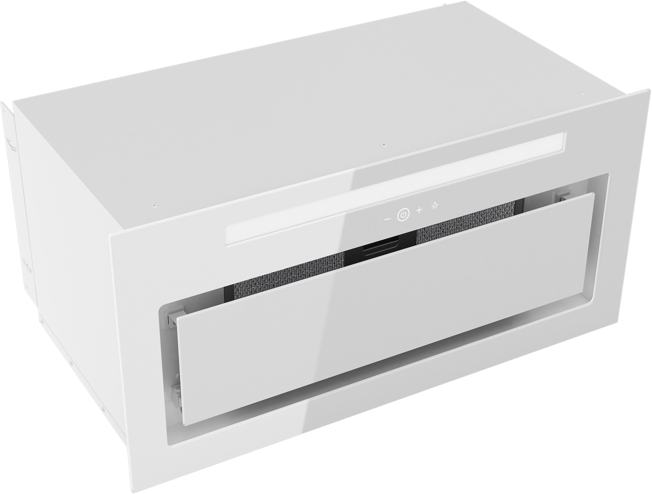 Plně vestavný odsavač s bílým spodním sklem, šířka 60 cm, 1 motor/1 ventilátor, dotykové ovládání na skle + dálkový ovladač, 3 stupně výkonu + režim BOOST, výkon odtahu ve standardním režimu 210 - 380 m3/h, výkon odtahu v režimu BOOST 515 m3/h, hlučnost ve standardním režimu 48-61 dB(A), hlučnost v režimu BOOST 66 dB(A), roční spotřeba energie 63 kWh/a, energetická třída B (energetický štítek B,C,A,B), osvětlení 1x LED pásek v přední části, tukový filtr (typ ALU, 8 vrstev) omyvatelný v myčce nádobí (součást balení), filtry z aktivního uhlíku pro režim recirkulace: 2x FR-7944 (nahrazuje FDUEEL), rozměry (V x Š x H): 355 x 596 x 290 mm