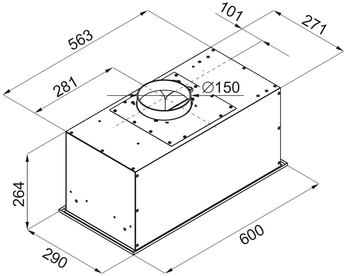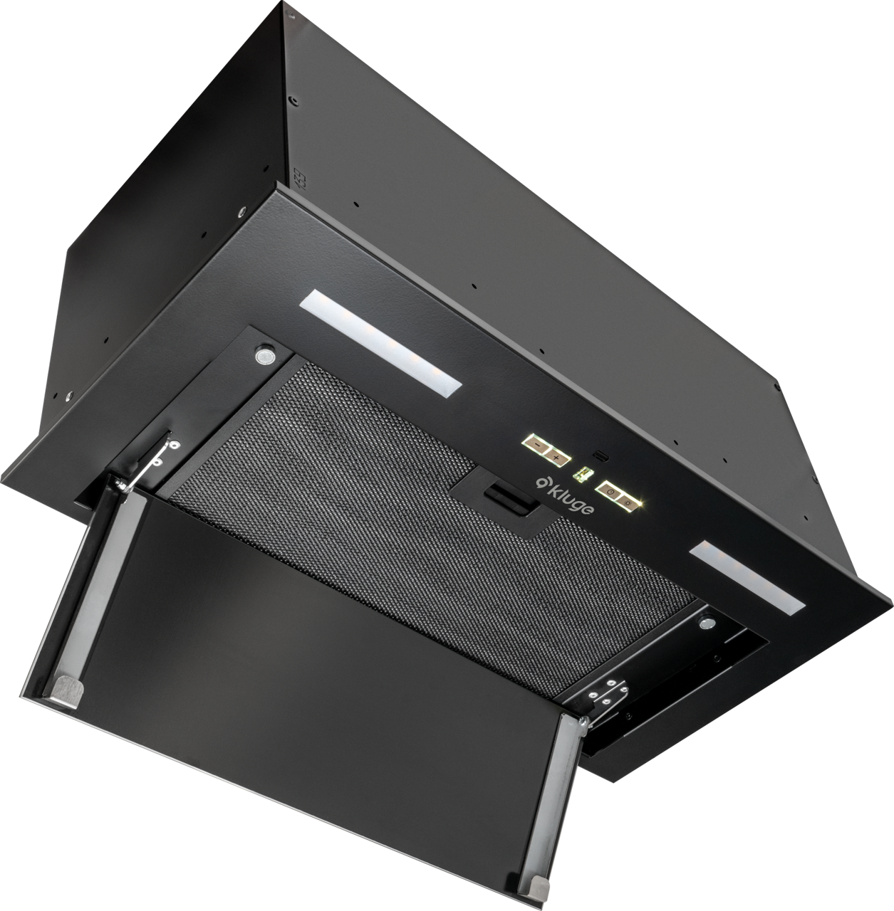 Plně vestavný odsavač v provedení černý matný kov + černé sklo, šířka 60 cm, LED displej, soft touch ovládání, 3 stupně výkonu + režim BOOST, funkce odloženého vypnutí o 10 až 90 minut, výkon odtahu ve standardním režimu 250 - 430 m3/h, výkon odtahu v režimu BOOST 660 m3/h, hlučnost ve standardním režimu 51-63 dB(A), hlučnost v režimu BOOST 70 dB(A), roční spotřeba energie 66 kWh, energetická třída B (energetický štítek B,B,A,D), osvětlení 2x LED pásek, tukový filtr (hliníkový) omyvatelný v myčce nádobí (součást balení), filtr z aktivního uhlíku pro režim recirkulace: 2 x FR-8705 (nahráda za FWND185), rozměry se spodním panelem (V x Š x H): 264 x 600 x 290 mm, rozměry pro vestavbu (Š x H): 563 x 271 mm