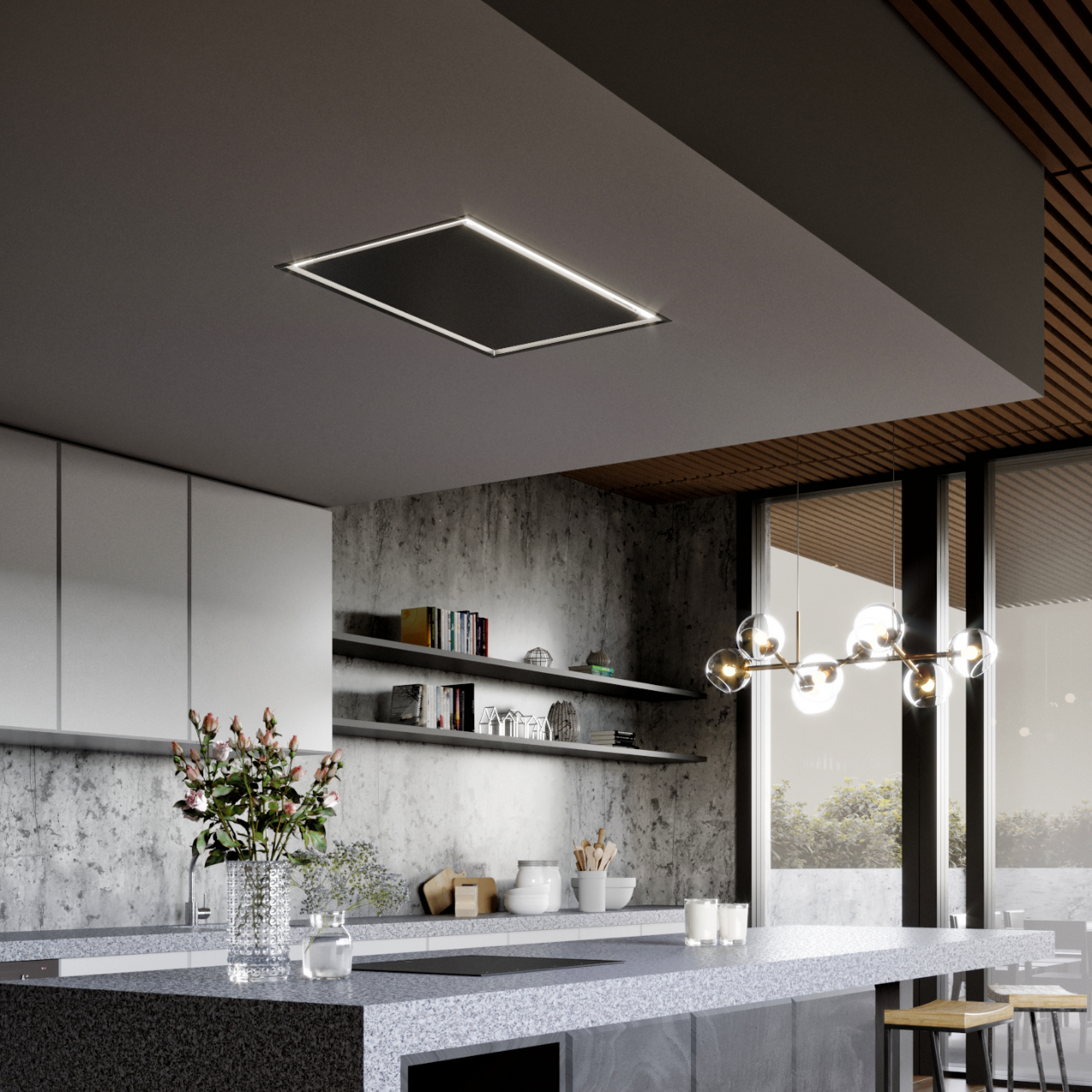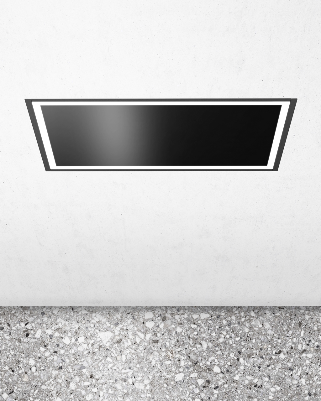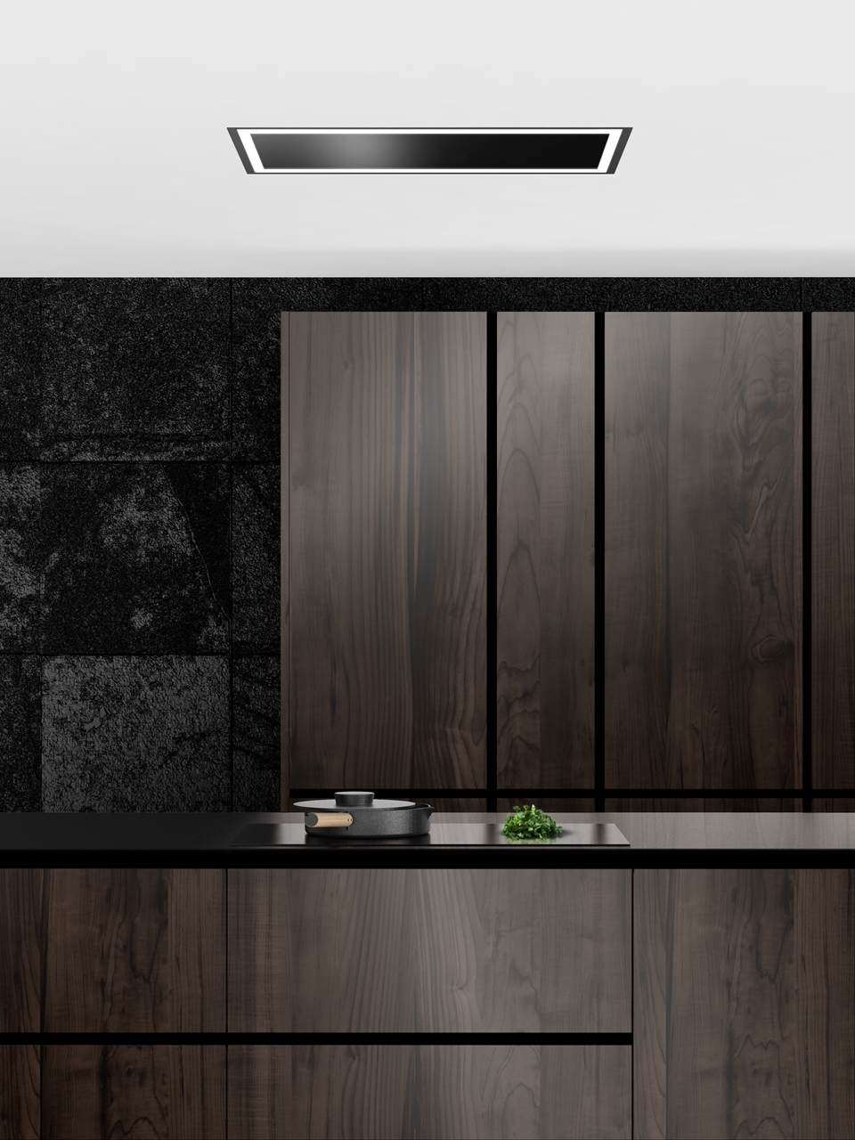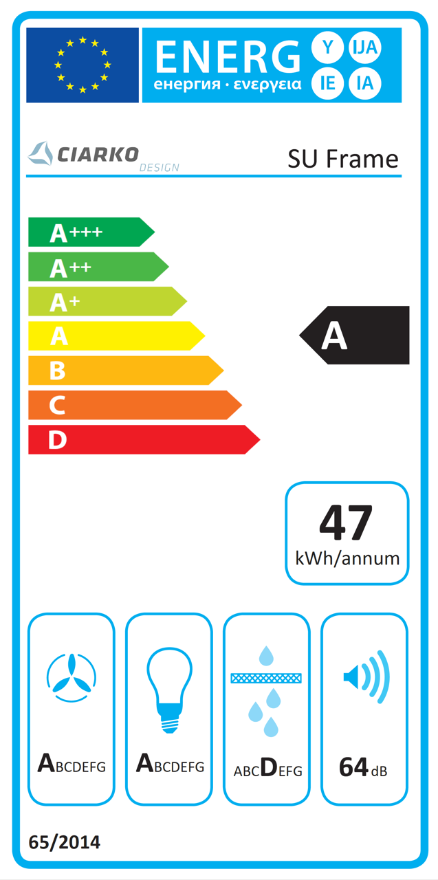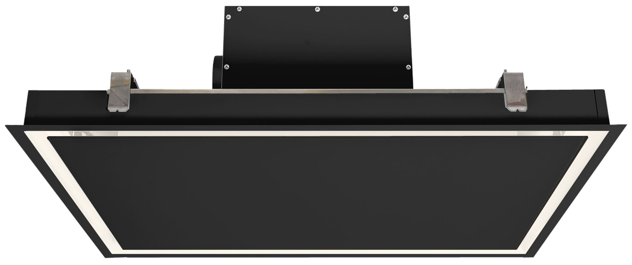 Plně vestavný stropní odsavač SU Frame Black z prémiové řady designových odsavačů Ciarko Design, provedení černý kov, šířka 90 cm, výkonný plochý motor, dálkový ovladač, 3 stupně výkonu + režim BOOST, výkon odtahu ve standardním režimu 180 - 450 m3/h, výkon odtahu v režimu BOOST 710 m3/h, hlučnost ve standardním režimu 44-64 dB(A), hlučnost v režimu BOOST 70 dB(A), roční spotřeba energie 53,1 kWh/a, energetická třída A (energetický štítek A,A,A,D), 4 x LED pásky s regulací teploty světla, provoz pouze v režimu odtahu (uhlíkový filtr není potřebný), rozměry (V x Š x H): 187 x 900 x 600 mm