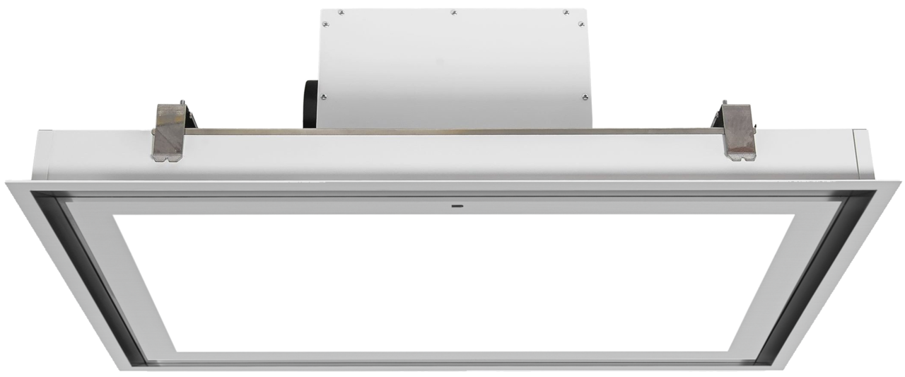 Plně vestavný stropní odsavač SU Light Inox White z prémiové řady designových odsavačů Ciarko Design, provedení nerez + bílé sklo, šířka 90 cm, výkonný plochý motor, dálkový ovladač, 3 stupně výkonu + režim BOOST, výkon odtahu ve standardním režimu 180 - 450 m3/h, výkon odtahu v režimu BOOST 710 m3/h, hlučnost ve standardním režimu 44-64 dB(A), hlučnost v režimu BOOST 70 dB(A), roční spotřeba energie 53,1 kWh/a, energetická třída A (energetický štítek A,A,A,D), osvětlení: LED panel s vysokou svítivostí, provoz pouze v režimu odtahu, rozměry (V x Š x H): 187 x 900 x 600 mm