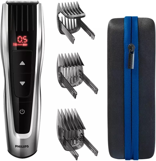 Elektrický zastřihovač vlasů Philips řady 9000 s dotykovým ovládáním. Motorkem ovládané nastavení na jednu ze 60 délek od 0,5 mm do 42 mm. Titanové samoostřící čepele pro maximální životnost. Funkce Turbo automaticky zvýší výkon při stříhání hustých vlasů. Výdrž: 120 minut/1h nabíjení