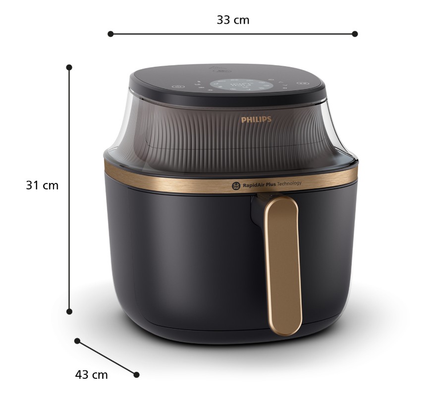 Vychutnávejte si svá oblíbená smažená jídla připravená zdravějším způsobem! Philips Airfryer je propeče dokonale rovnoměrně a dokřupava, avšak ke smažení místo oleje využívá rychlou cirkulaci horkého vzduchu. Pokrmy tak obsahují až o 90 % méně tuku. Patentovaná technologie RapidAir Plus a unikátní dno ve tvaru hvězdice umožňují přístroji dosahovat perfektních výsledků. Přístroj toho ale nabízí mnohem více než jen smažení, vybírat můžete celkem z 16 způsobů přípravy jídla. Pro inspiraci navštivte bezplatnou aplikaci HomeID, ve které najdete lahodné a nutričně vyvážené recepty. Aplikace je plně v českém jazyce. Objem přístroje činí 6,2 l a aktuální stav snadno a bez přerušení programu zkontrolujete pomocí okénka v horní části přístroje.
