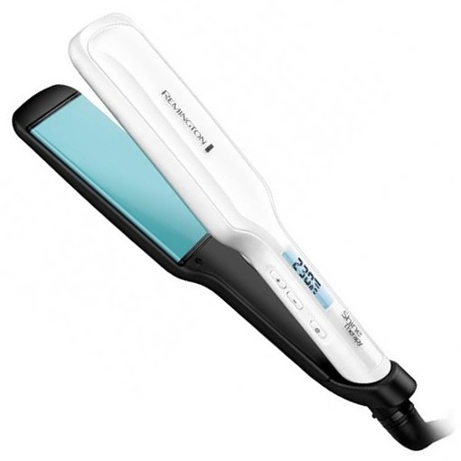 Remington S8550 - žehlička na vlasy • žehlicí plochy z keramiky napuštěné marockým arganovým olejem • 50 mm široké žehlicí plochy • teplota 150 až 235 °C • nahřátí za 15 sekund • možnost uzamčení žehlicích ploch • funkce uzamknutí teploty • funkce Boost • automatické vypnutí po 60 minutách • digitální displej • LED kontrolka • délka napájecího kabelu 2,5 m • ochranné pouzdro