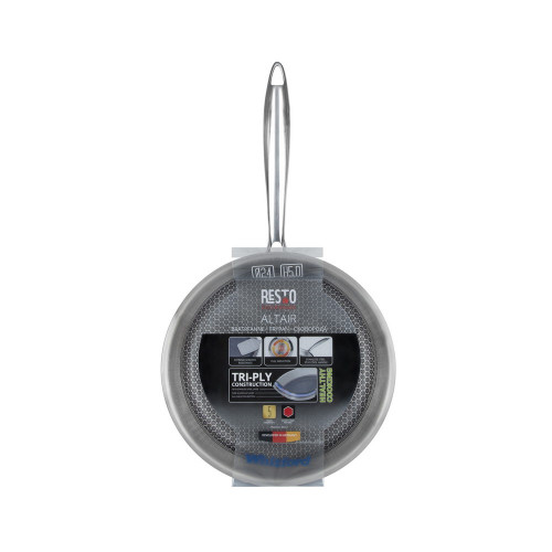 TRI-PLY (nerezová ocel 18/10 + hliník), Protiskluzový voštinový vzor s nepřilnavým povrchem, Nerezová ocelová rukojeť, Úspora energie až 25%, Vhodné pro všechny typy súporáků, Vhodné do myčky, Vhodné do trouby až do 220°?, Materiál: tři vrstvy z nerezi a hliníku, Průměr: 24 cm, Hloubka: 5 cm