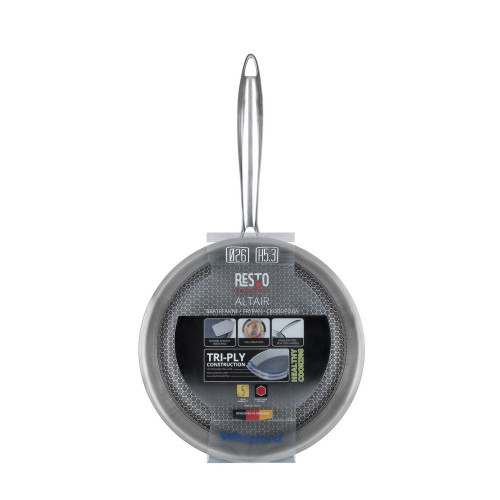 TRI-PLY (nerezová ocel 18/10 + hliník), Protiskluzový voštinový vzor s nepřilnavým povrchem, Nerezová ocelová rukojeť, Úspora energie až 25%, Vhodné pro všechny typy súporáků, Vhodné do myčky, Vhodné do trouby až do 220°?, Materiál: tři vrstvy z nerezi a hliníku, Průměr: 28 cm, Hloubka: 5,5 cm