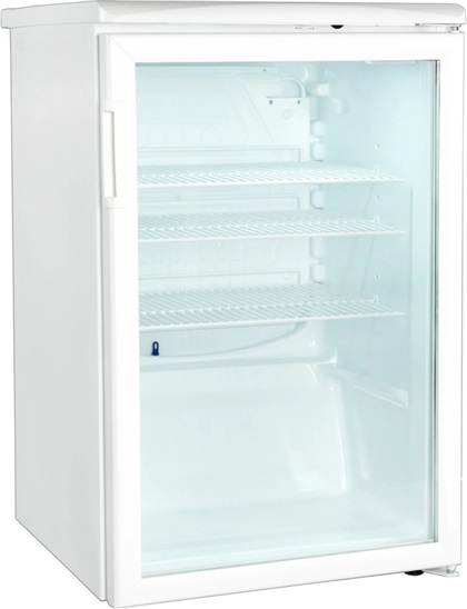 Bílý rám dveří z PVC s madlem, 2 vrstvy skla, vnější tvrzené 3 x výškově stavitelná drátěná police Čistý objem 123 l, Úložná plocha polic: 0,43 m2 Úložná kapacita: 0,5 l lahve: 62 ks, 0,33 l plechovky: 153 ks Možnost regulace vnitřní teploty Rozsah teploty: -2 až +14 °? Vnitřní LED osvětlení Automat