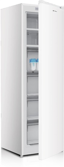 Volně stojící zásuvková mraznička Total No Frost; Bílé barevné provedení s integrovaným madlem; Čistý objem mrazničky: 204 l; Funkce „super mrazení“; Elektronické ovládání s LED indikátory; 4 objemné zásuvky a 2 posuvné zásuvky; Mrazící výkon: 13/24h; Výdrž bez proudu: 10 hod.; Alarm otevřených dveří; Energetická třída D; Hlučnost 39 dB(A); Rozměry (V x Š x H): 171 x 55 x 60
