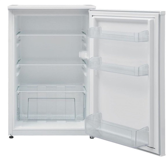 Lednice - bez mrazáku, energetická třída E, objem ledničky 135 l, panty vpravo, 3 police, 1 chladicí okruh, no Frost, rozměry 83,8 × 54 × 59,5 cm (V׊×H)