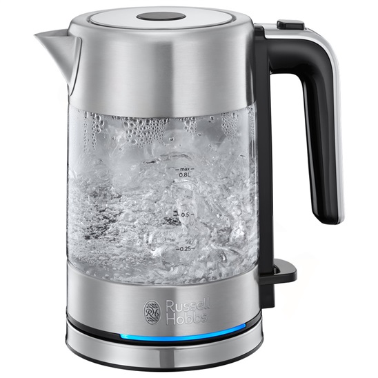 Objem: 0,8 l,rychlejší var,60% úspora energie,o 30 % menší velikost,ukazatel množství vody,odnímatelné víko,ideální tvar nálevky,modré podsvícení během varu,odnímatelný a omyvatelný filtr,skryté topné tělísko,příkon: 2 200 W