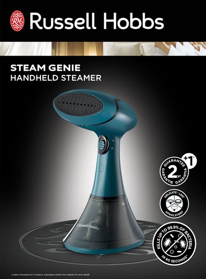 Russell Hobbs 27220-56 - napařovač oděvů • příkon 1800 W • plynulý výstup páry 28 g/min • přívodní kabel 3 m • zahřátí za 45 vteřin • doba napřování 7 minut • za 60 vteřin zničí až 99,9 % bakterií • funkce automatického vypnutí • světelný indikátor provozu • odnímatelná 200ml nádržka na vodu • příslušenství – nástavec na jemné prádlo