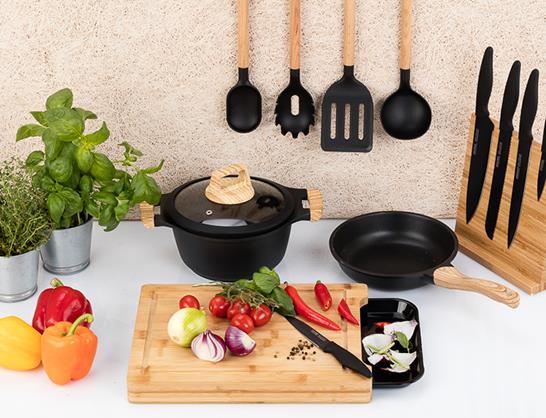 Sada kuchyňského náčiní KLUGE Smile SAK-3 je vyrobena z bukového dřeva a vysoké třídy nylonu odolného až 210°C.