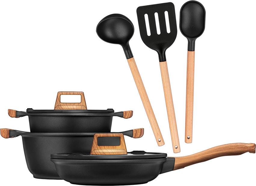 Základ nádobí KLUGE Smile MGK-23 tvoří hliníkový odlitek s tlustým sendvičovým dnem. Vícevrstvé dno svým složením a konstrukcí zaručuje perfektní rovnoměrný rozvod tepla po celé ploše. Umožňuje ohřev všemi způsoby tj. na tradiční plotně, na plynu a zejména na indukcích.