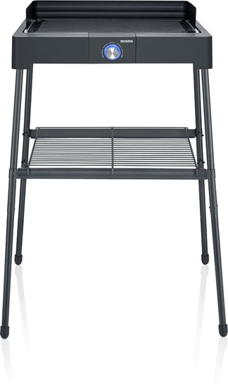 Severin PG 8568 Stojanový gril - stojanový gril • příkon 2200 W • hliníkový litý nepřilnavý rošt • rozměr grilovací plochy 44,5×26 cm • termostat • knoflík s kontrolkou • pouzdro SafeTouch • snadné čištění • štít proti větru • bezpečnostní vypínač • délka kabelu 1,4 m