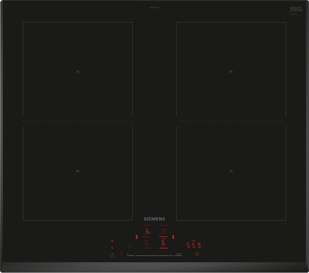 indukční varná deska, 60 cm, 4 indukční varné zóny, z toho 2 combiZone, ovládání touchSlider+, Intelligent hood automatic, powerBoost, dětská pojistka, 2stupňový ukazatel zbytkového tepla pro každou varnou zónu, příkon: 7,4 kW, U-fazeta