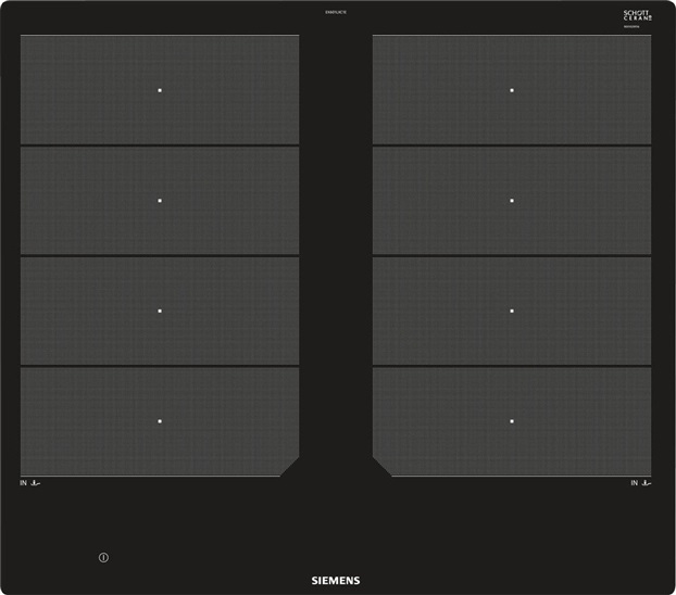 indukční varná deska, 60 cm, 4 indukční varné zóny, z toho 2 flexZones s rozšířením, ovládání dual lightSlider, fryingSensor Plus, powerMove Plus, panBoost, powerBoost, dětská pojistka, 2stupňový ukazatel zbytkového tepla pro každou varnou zónu, příkon: 7,4 kW, design bez rámečku (pro zapuštění do pracovní desky)