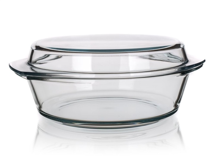 Pekáč skleněný kulatý s víkem 2,1 l (1,5/0,6)Pekáč kulatý s víkem 2,1 l se vyrábí z tvrdého boritokřemičitého skla, které velmi odolné mechanicky i teplotně ( odolnost +300 / -40 stupňů ). Výhodou je dlouhá životnost, hygienická nezávadnost a snadná údržba (lze mýt v myčce na nádobí).