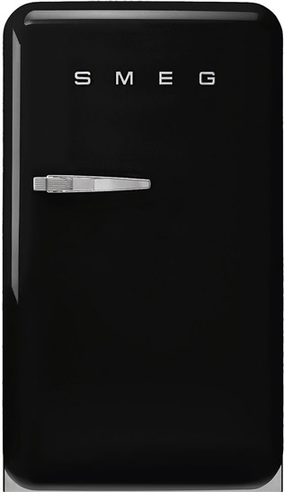 50's Style, automatic defrost, barva černá, panty napravo, vnitřní mrazák, LED-vnitřní osvětlení, celková kapacita 122 l, en.třída E, 37 db(A)/C