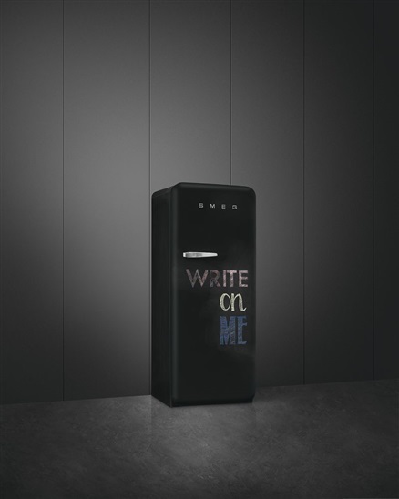 50's Style, Write On Me, automatic defrost, invertor, panty napravo, přihrádka s nulovou zónou Life Plus 0 °C, šuplíky na válečkových pojezdech, Multifflow-recirkulace chladného vzduchu, LED-vnitřní osvětlení, celková kapacita 270 l, en.třída D, 35 dB(A)/B