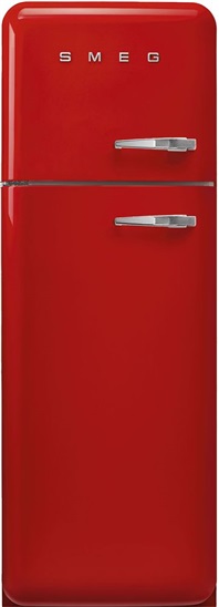50's Style, 172x60 cm, manual defrost, invertor, barva červená, panty nalevo, přihrádka s nulovou zónou Life Plus 0 °C, šuplíky na válečkových pojezdech, Multifflow-recirkulace chladného vzduchu, LED-vnitřní osvětlení, celková kapacita 294 l (222 l chladnička + 72 l mraznička), en.třída D, 37 dB(A)/