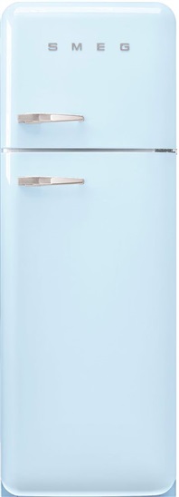 50's Style, 172x60 cm, manual defrost, invertor, barva pastelově modrá, panty napravo, přihrádka s nulovou zónou Life Plus 0 °C, šuplíky na válečkových pojezdech, Multifflow-recirkulace chladného vzduchu, LED-vnitřní osvětlení, celková kapacita 294 l (222 l chladnička + 72 l mraznička), en.třída D,