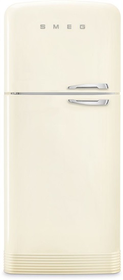 50's Style, No Frost, invertor, barva krémová, panty napravo, přihrádka s nulovou zónou Life Plus 0 °C, šuplíky na válečkových pojezdech, Multifflow-recirkulace chladného vzduchu, LED-vnitřní osvětlení, interní displej, aktivní ionizátor, celková kapacita 524 l, en.tříd