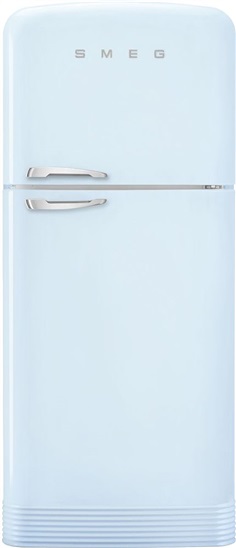 50's Style, 192x80 cm, No Frost, invertor, barva pastelově modrá, panty napravo, přihrádka s nulovou zónou Life Plus 0 °C, šuplíky na válečkových pojezdech, Multifflow-recirkulace chladného vzduchu, LED-vnitřní osvětlení, interní displej, samostatná regulace teploty, activní ionizátor, manuální výro