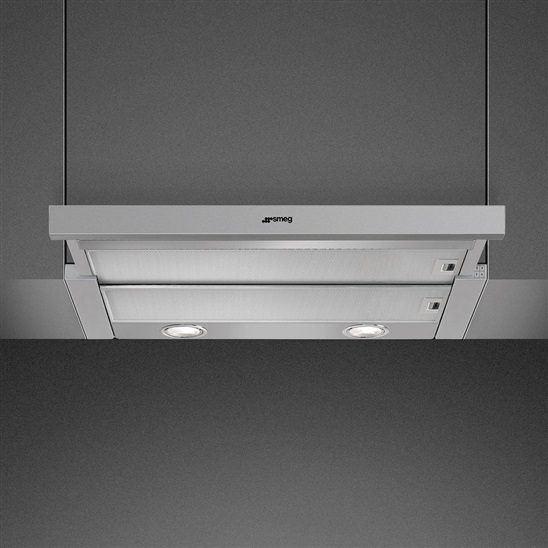 Vestavný odsavač, 60 cm, stříbrný, teleskopický výsuv, 3 stupně výkonu + intenzivní, 2 LED-světla, výkon při stupni intenzivní 647 m3/h, en.třída A