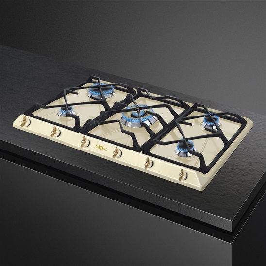 Plynová varná deska, 90 cm, smalt v krémové barvě, počet varných zón 5, 2 DUAL UR-rapid gas zóny, 12,4 kW, litinové rošty