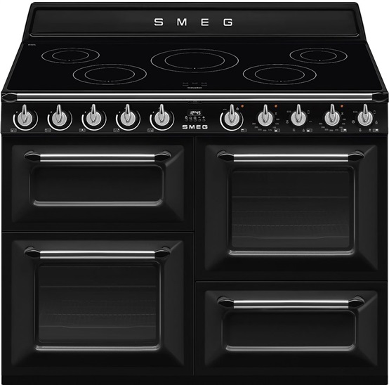 Varné centrum, 110x60 cm, barva černá, indukční varná deska s Eco-Logic (snížení připojeného výkonu), 3 trouby, multifunkce, horký vzduch, boční otevírání dvířek, digitální programovatelný časovač, Vapor Clean, objem 61/61 l, en.třída A/A