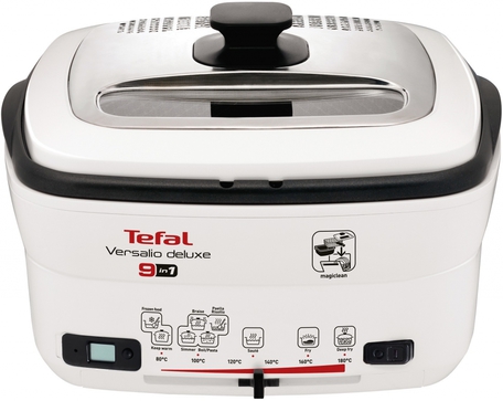 Tefal FR 495070 - příkon 1600 W, Versalio de Luxe, kapacita 1,3 kg, 0 až 2 l oleje, 9v1- frituje, vaří, zapéká, dusí, pomalu vaří, smaží, opéká, peče, udržuje teplotu, ohřívá a rozmrazuje, s novým programem na vaření těstovin a Paelly, vyjímatelná nádoba, obracečka v balení, barva bílá