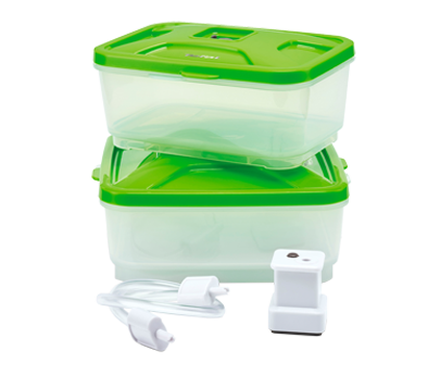 Tefal Vacupack sada sous-vide krabiček: 1 krabička 600ml1 krabička 800ml1 adaptérumývatelné v myčcekompatibilní s Tefal Vacupack