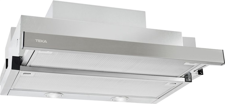 Výsuvná digestoř; odtah/recirkulace; 2 rychlosti výkonu + intenzivní; max. výkon odtahu 445 m3/h (694 m3/h); hliníkový tukový filtr; automatický spínač/vypínač výsuvem; časovač; možnost demontáže čelního panelu; tlačítkové ovládání; LED osvětlení; provedení nerez; šířka 60 cm