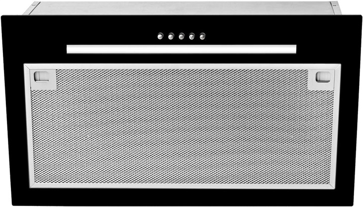 Teka GFG 2 BK - celozástavný odsavač par • odtah/recirkulace • 3 rychlosti výkonu • max. výkon odtahu 304 m3/h • hliníkový tukový filtr • tlačítkové ovládání • LED osvětlení • šířka 55 cm (pro montáž do korpusu 60 cm) • provedení: nerez/černá