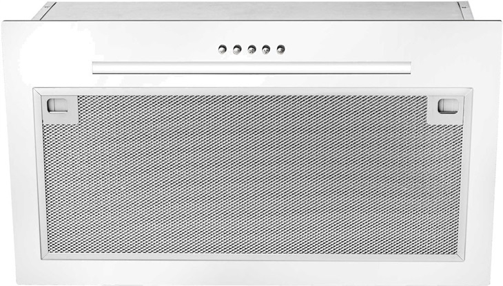 Celozástavná digestoř; odtah/recirkulace; 3 rychlosti výkonu; max. výkon odtahu 304 m3/h; hliníkový tukový filtr; tlačítkové ovládání; LED osvětlení; provedení nerez/bílá; šířka 55 cm pro montáž do korpusu 60 cm