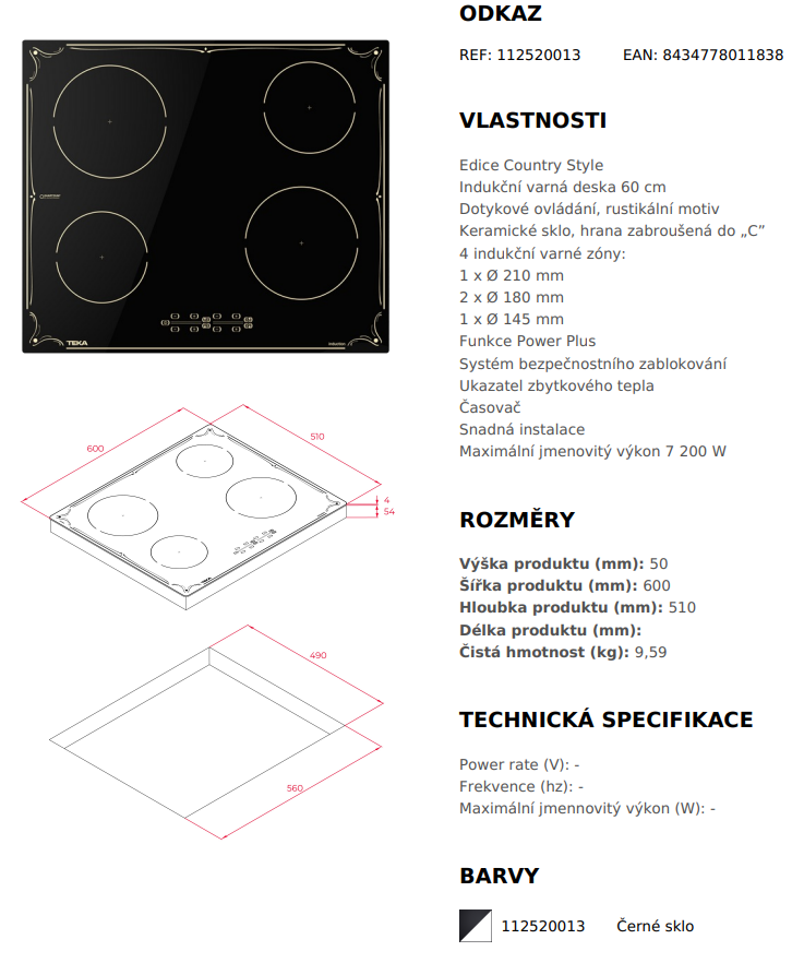Kluge KTE1010B - vestavná trouba • energetická třída A • objem 69 l • příkon 3100 W • 9 funkcí...