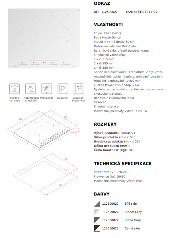Indukční varná deska 60 cm z edice Urban Colors