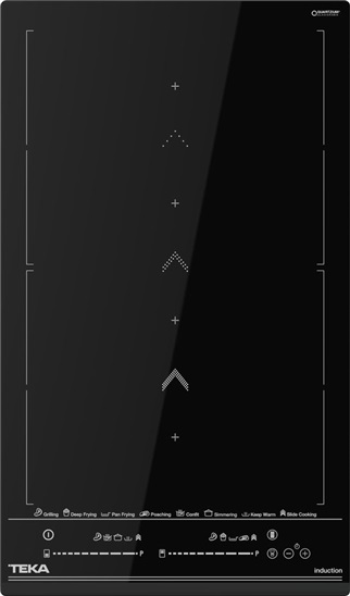 Indukční varná deska; šíře 30 cm; černá; přední zkosená hrana; 230/380 V; 2 indukční zóny 255x200 mm; max. příkon 3600 W; 9 stupňů výkonu; 8 speciálních funkcí; Flex Slide Cooking posuvné vaření; Power Plus; dotyk. ovládání Multislider; časovač; ukazatel zbytk. tepla; systém bezpečn. zablokování.